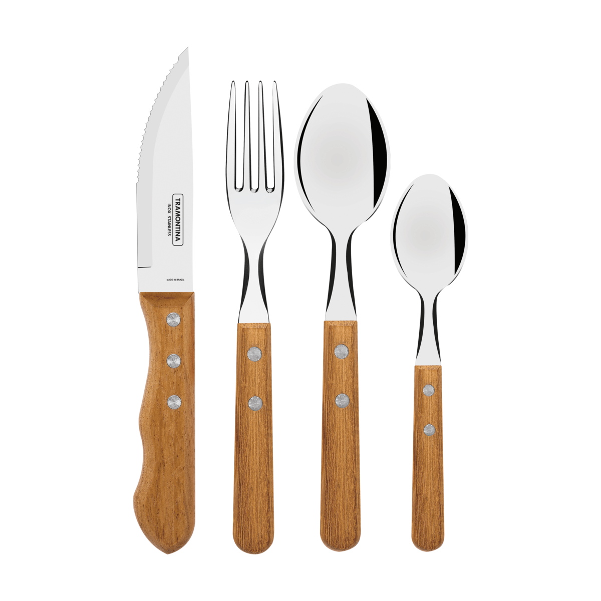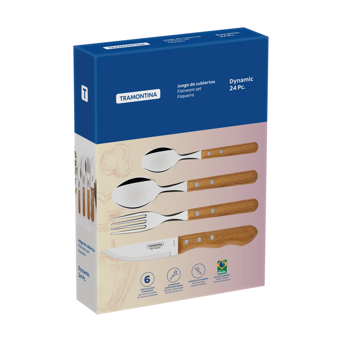 Juego de Cubiertos Dynamic Tramontina con Láminas de Acero Inoxidable y Mangos de Madera Natural 24 Pzs